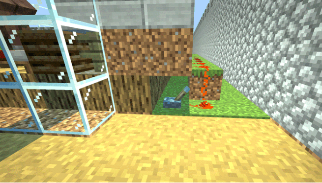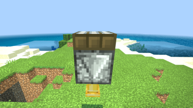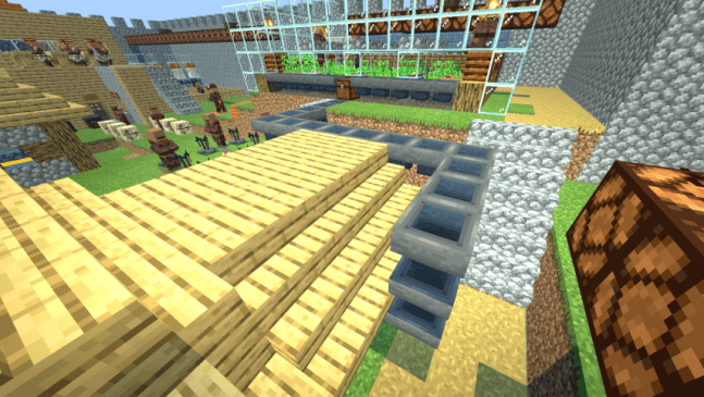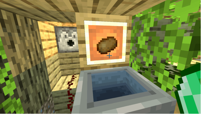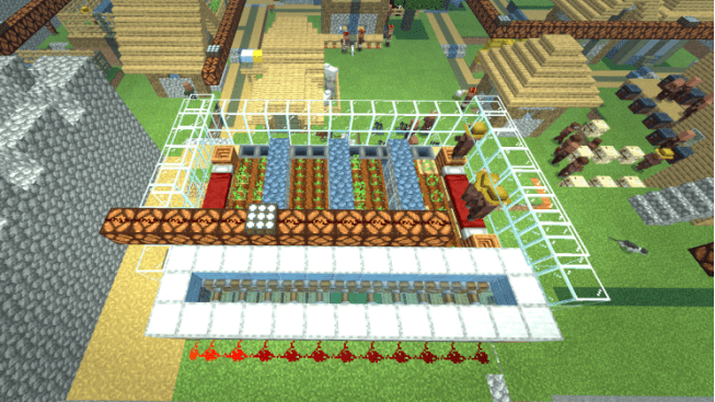 When the crops in the fields mature, the editor can pull a lever to release water for harvesting. The flowing water also serves as a cleaning agent. Finally, hoppers will collect the crops into the chests below.