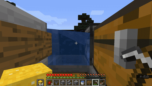Next, place the sign on the upside-down stair, and put a bucket of water in the middle of the three stone bricks.