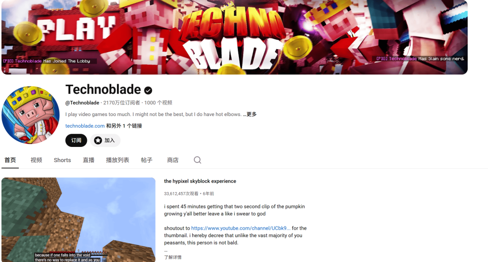 Technoblade was a faceless YouTuber, often represented in his videos by the image of a pig wearing a golden crown. The pig wearing a golden crown that appears in the Minecraft movie is a tribute to him. He was renowned in the Minecraft sphere for completing various high-difficulty challenges, showcasing exceptional gameplay skills, and actively participating in major Minecraft community events. His achievements include securing 1,818 victories in Bed Wars, winning first place in the inaugural Minecraft Monday tournament, and harvesting the largest number of potatoes in Minecraft history. He also collaborated with top-tier content creators such as PewDiePie, Dream, and Mr. Beast.